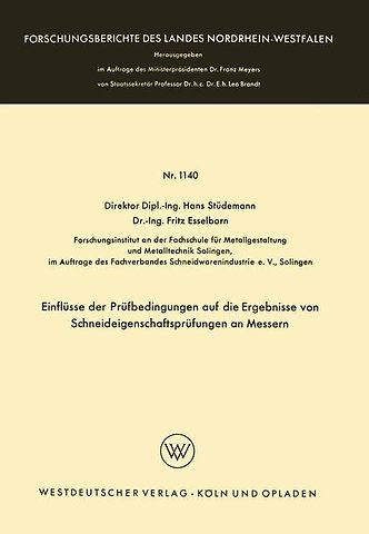 Der vorliegenden Veröffentlichung liegt ein Teil einer Forschungsarbeit über die Einflüsse unterschiedlicher Herstellung von rostbeständigen Messern auf deren Qualität zu Grunde. Für diese Untersuchungen waren zur Qualitätsbeurteilung der Messer in groBem Umfang auch Prüfungen der Schneideigenschaften durch zuführen. Da für diese Prüfungen zwar einige Verfahren bekannt sind, über deren Brauch barkeit aber bis her nur sehr unzureichende Angaben vorliegen, waren zwangs läufig in dieser Hinsicht Untersuchungen vorzunehmen. Wegen der Bedeutung dies er Fragen ist die Bearbeitung dieses in sich abgeschlossenen Problemkreises über den in der ob en genannten Arbeit aufgenommenen Umfang hinaus erfolgt, und es soll hier getrennt von den anderen Untersuchungsergebnissen darüber be richtet werden. Eine Reihe der in oben angeführter Arbeit angesprochenen und untersuchten Probleme liegt der Dr.-Ing.-Dissertation von F. ESSELBORN zu Grunde, die von der Fakultät für Bergbau und Hüttenwesen der Rheinisch-Westfälischen Techni schen Hochschule Aachen genehmigt worden ist. Die wissenschaftliche Be treuung dieser Dissertation hatte dankenswerterweise Herr Dr. phil. A. ROSE übernommen. Weitere Ergebnisse des gesamten Forschungsvorhabens sollen in späteren Heften dieser Schriftenreihe veröffentlicht werden.