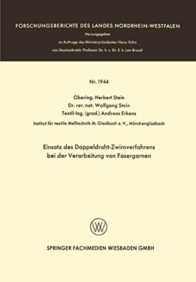 Neben dem konventionellen Ring-Zwirnverfahren hat sich das Doppeldraht-Zwirnver fahren in größerem Umfang zur Verarbeitung von Fasergarnen einführen können. Es ermöglicht die Erzeugung großer knotenfreier Fadenlängen und gestattet die Anwen dung relativ hoher Liefergeschwindigkeiten, da dem Faden bei einem Spindelumlauf zwei Drehungen erteilt werden. Das vorliegende Forschungsvorhaben wurde von der Industrie angeregt. Es befaßt sich mit Fragen des Ausfalls der Zwirne hinsichtlich Festigkeit und Dehnung, der Drehungsverteilung, der Garnbeanspruchung während der Verarbeitung, die sich durch eine störende Staubbildung aufzeigt. Vergleichend wurden in die Untersuchungen auch Zwirne einbezogen, für deren Her stellung das Z weistufen-Verfahren (V orzwirn- und Auszwirnmaschine) und das Ring Zwirnverfahren zur Anwendung kam. An der Durchführung der Arbeiten im praktischen Betrieb und im Laboratorium, und an der Ausfertigung des vorliegenden Berichtes haben außer den Autoren mitgewirkt: Textil-Ing. (grad.) H. v. d. WEYDEN und die Textillaborantinnen K. LAUMEN und E. FEIKE. Ganz besondere Unterstützung haben die Untersuchungen durch die Mitwirkung von Herrn Dr. RIEBER (Farbwerke Hoechst) erfahren, der einen Teil der analytischen Arbeiten durchführte. Außerdem leistete Herr Dr. RIEBER wertvolle Hilfe bei der Ab fassung des vorliegenden Berichtes. 2. Allgemeine Betrachtungen Aus der Literatur sind eine Reihe von Veröffentlichungen bekannt, die das Doppeldraht Zwirnverfahren zum Gegenstand haben. Im folgenden ist der Versuch gemacht, aus diesen Veröffentlichungen einen kurzen zusammenfassenden Überblick über das Prinzip des Doppeldrahtzwirnens und damit zusammenhängende Probleme zu gewinnen. Da bei wird, insbesondere bezüglich der letzten Neuerungen auf dem Maschinensektor, nicht der Anspruch auf Vollständigkeit erhoben.