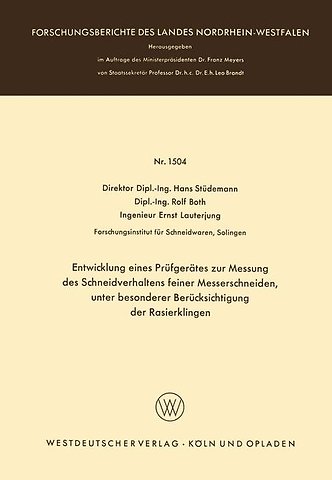 Entwicklung eines Prüfgerätes zur Messung des Schneidverhaltens feiner Messerschneiden, unter besonderer Berücksichtigung der Rasierklingen