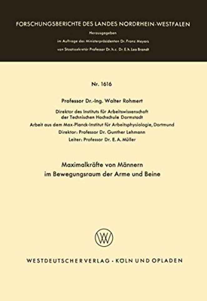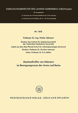 Es liegen bereits zahlreiche Untersuchungen über die maximalen Kräfte an Hand und Fußhebeln verschiedener Art sowie an ähnlichen Bedienteilen von Maschinen und Apparaten vor. ROHMERT und HETTINGER [26] haben es in jüngster Zeit unternommen, die Ergebnisse zu sammeln und in übersichtlichen Tabellen und Diagrammen als Arbeitsunterlage für die praktische Tätigkeit von Arbeitsstudien männern, Betriebsingenieuren, Arbeitsvorbereitern, Architekten, Fertigungs ingenieuren und Konstrukteuren zusammen zu stellen. Es sei an dieser Stelle die in der Zusammenstellung verarbeitete Literatur zitiert [1, 3, 4, 5, 6, 8, 9, 10, 11, 12, 13,14,15,16, 17a, 18,20,21, 23,25,28,29, 30, 31,32,33,34,35], da die Zusammen stellung für den Praktiker auf Literaturhinweise verzichtete. Trotz der zahlreichen durchgeführten Einzeluntersuchungen fehlt jedoch eine umfassende biometrische Analyse der Maximalkräfte des Menschen im gesamten Bewegungsraum der Gliedmaßen in allen Richtungen und Abständen relativ zum Körper und in den verschiedensten Körperstellungen. Wir stellten uns die Auf gabe, eine solche Analyse zu beginnen. Aus den Ergebnissen der Messungen maximaler Kräfte im Bewegungsraum der Arme und Beine soll ein Biometrischer Kraftatlas erstellt werden, in dem für die sechs Koordinatenrichtungen und für beide Drehrichtungen Isodynen (Linien gleicher Kräfte) in verschiedenen Ebenen einzuzeichnen sind. 7 2. Bestimmung und Abgrenzung der Begriffe Solange es nicht möglich ist, Muskelkräfte entweder unmittelbar im bzw. am Muskel selbst zu messen oder an einem Gliedmaßenmodell des menschlichen Körpers aus Gleichgewichtsbetrachtungen zu berechnen, kann die Kraftwirkung des Körpers nach außen praktisch nur durch Messung der außerhalb des Körpers wirkenden Reaktionskräfte ermittelt werden.