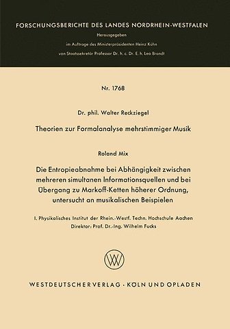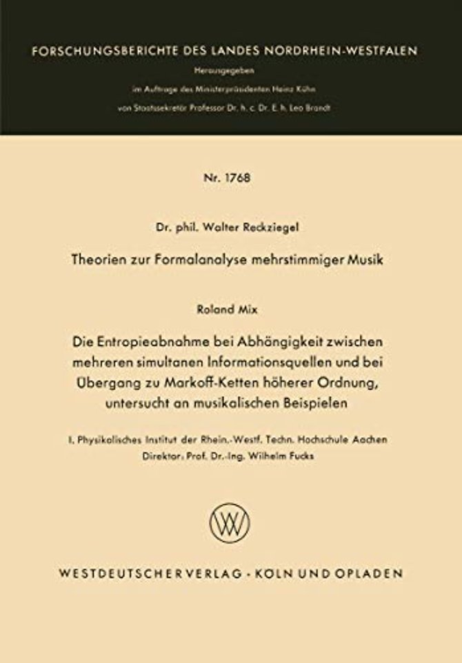 Die Entropieabnahme bei Abhängigkeit zwischen mehreren simultanen Informationsquellen und bei Übergang zu Markoff-Ketten höherer Ordnung, untersucht an musikalischen Beispielen