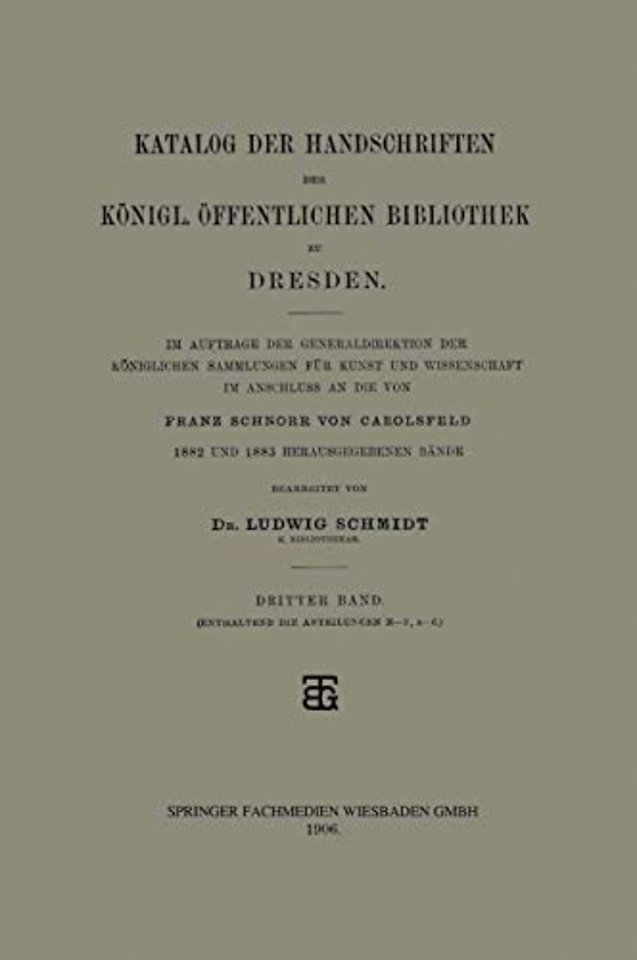Katalog der Handschriften der Königl. Öffentlichen Bibliothek zu Dresden