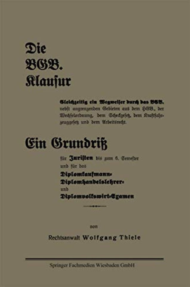 Gleichzeitig ein Wegweiser durch das BGB. nebst angrenzenden Gebieten aus dem HGB., der Wechselordnung, dem Scheckgesetz, dem Kraftfahrzeuggesetz und dem Arbeitsrecht. Ein Grundriß für Juristen bis zum 6. Semester und für das Diplomkaufmann-Diplomhandelsl