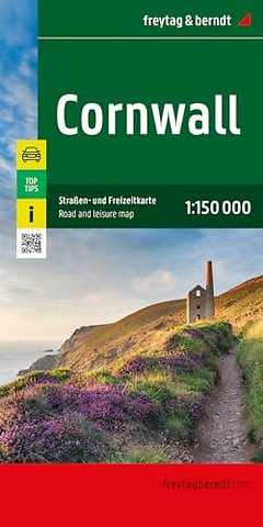 The Cornwall road map at a scale of 1:150,000 is ideal for holidaymakers traveling by car, motorcycle, or caravan. The extensive road network is accurately depicted and includes important tourist information.