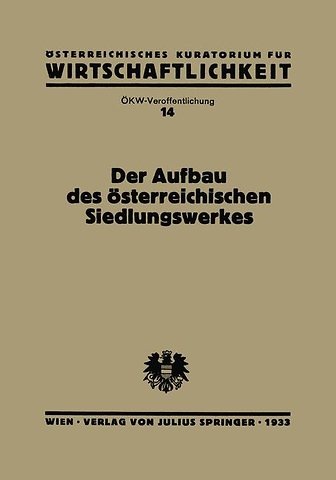 Allgemeine Gesichtspunkte für den Aufbau des Siedlungswerkes.- 1. Begriffsabgrenzung für „Innenkolonisation“ und „Siedlung“.- 2. Die Bedeutung der Siedlungsbewegung für die Wirtschaftspolitik der Gegenwart.- 3. Wirtschaftsstatistische Grundlagen für den Aufbau des österreichischen Siedlungswerkes.- a) Die Voraussetzungen und Absatzmöglichkeiten für die Siedlerproduktion.- b) Die Bekämpfung der Arbeitslosigkeit durch den Aufbau des Siedlungswerkes.- Der Aufbau der Siedlungsstelle.- I. Die Siedlungstypen.- II. Das Siedlungsland.- 1. Die Bodenbeschaffung.- a) Allgemeine Voraussetzungen für Bodenbeschaffung.- b) Maßnahmen zur Beschaffung von Siedlungsland.- 2. Die städtebaulichen Voraussetzungen für den Siedlungsaufbau.- 3. Die Landnutzung.- a) Die landwirtschaftliche Nebenerwerbssiedlung. (Allgemeine Richtlinien, Beispiel einer Ertragsrechnung).- b) Die gartenwirtschaftliche Siedlung. (Allgemeine Richtlinien, Beispiel einer Ertragsrechnung).- III. Die Siedlungsbauten.- 1. Allgemeine Richtlinien.- a) Planung und Ausführung.- b) Material (Holzbauweise, Massivbauweisen).- 2. Anwendung der allgemeinen Richtlinien für die einzelnen Siedlungstypen.- 3. Baukosten.- IV. Die Arbeitsorganisation für den Siedlungsaufbau.- 1. Die Bedeutung der Selbsthilfearbeit der Siedler für den Siedlungsaufbau.- a) Die Möglichkeiten und Wege der Selbsthilfe.- b) Die Bedeutung der gewerblichen Facharbeit.- 2. Der freiwillige Arbeitsdienst für den Siedlungsaufbau.- Die Siedlungsorganisation.- 1. Die Finanzierung.- a) Die Möglichkeiten zur Aufbringung der Mittel.- b) Erstattete Finanzierungsvorschläge.- 2. Der Aufbau und die Rechtsform des Siedlungsträgers.- a) Die Organisation der vorstädtischen und landwirtschaftlichen Siedlung im Deutschen Reich.- b) Die Organisierung des Siedlungswerkes in Österreich.- 3. Schulung und Auswahl der Siedler.- a) Die Errichtung von Siedlerkursen.- b) Die weitere und engere Auswahl der Siedler.- 4. Die Beratung der Siedler.- Die gesetzlichen Maßnahmen zur Siedlungsförderung..- I. Gesetzliche Maßnahmen zur Siedlungsförderung in anderen Staaten.- 1. Deutsches Reich (Die landwirtschaftliche Siedlung, die Errichtung von vorstädtischen Kleinsiedlungen und Kleingärten).- 2. Bulgarien.- 3. Dänemark.- 4. Estland.- 5. Italien.- 6. Jugoslawien.- 7. Polen.- 8. Rumänien.- 9. Schweden.- 10. Tschechoslowakische Republik.- 11. Ungarn.- II. Die derzeitigen gesetzlichen Maßnahmen zur Siedlungsförderung in Österreich.- Die Randsiedlungsaktion des Bundes-Wohn- und Siedlungsfonds im Bundesministerium für soziale Verwaltung.- III. Künftige Möglichkeiten einer öffentlich- und privatrechtlichen Siedlungsförderung in Österreich.- A. Öffentlich-rechtliche Siedlungsförderung.- 1. Die Einsetzung eines Bundeskommissärs für das Siedlungswesen und eines Siedlungsbeirates.- 2. Legislativer Aufbau des österreichischen Siedlungswerkes.- a) Grundsätzliche Regelung der Siedlungsaktion.- b) Förderung der Siedlungsaktion durch Bundes- und Landesgesetze.- Maßnahmen für den Aufbau der Siedlung auf dem Gebiete der Stempelpflicht und des Gebührenwesens, des Grundverkehrs und Pächterschutzes, der Bauordnungen, des Abgabewesens, des Arbeitsrechtes und der Sozialversicherung.- Maßnahmen für den Weiterbestand der Siedlung auf dem Gebiete der Gemeindeordnungen, des Schul- und Kultuswesens, der Steuern und Abgaben.- B. Privatrechtliche Grundlagen der Siedlung.- C. Entwurf eines Bundesgesetzes betreffend die finanzielle Förderung von Siedlungsvorhaben.- Praktische Beispiele aus der bisherigen Siedlungstätigkeit in Österreich.- 1. Durchführung von Anliegersiedlungen durch das Bundesministerium für Land- und Forstwirtschaft.- 2. Errichtung von Stadtrand- und Primitivsiedlungen. (Stadtrandsiedlung Wien-Leopoldau, Primitivsiedlung Wien-Lobau, Durchführung von Randsiedlungen mit der Kredithilfe des Bundes-Wohn- und Siedlungsfonds).- Richtlinien für den Aufbau des österreichischen Siedlungswerkes.- I. Die Aufgabe des Siedlungsaufbaues.- II. Die elementaren Voraussetzungen für den Siedlungsaufbau: Geld, Boden, Arbeit.- III. Siedlungsträger.- IV. Auswahl der Siedler.- V. Schulung und Beratung der Siedler.- VI. Die Bedingungen für die Siedlungsförderung: Siedlungsvorhaben, Siedler, Richtpreise.- VII. Die organisatorische Durchführung des Siedlungsaufbaues: Siedlungsform, Interne Organisation, Übereignungsbedingungen.- Schluß.