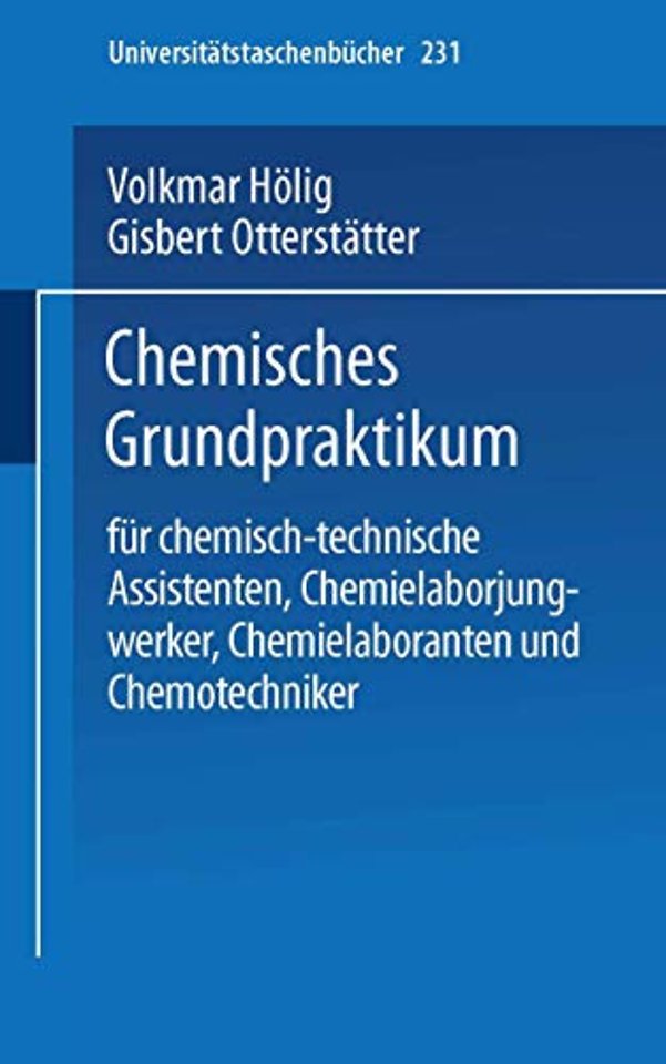 1. Unfallverhütung.- 1.1. Allgemeines.- 1.2. Übersicht über die Giftigkeit wichtiger, in diesem Buch aufgeführter Chemikalien (unter MAK-Wert versteht man die maximale Arbeitsplatzkonzentration, die bei täglich achtstündiger Arbeitszeit auch über Jahre hinaus den menschlichen Organismus nicht schädigt).- 1.3. Bezugsquellen für Schutzmittel.- 2. Qualitative Analyse.- 2.1. Anorganische Analysen.- 2.2. Organische Analyse.- 3. Quantitative Analyse.- 3.1. Titrimetrische Verfahren.- 3.2. Gravimetrie.- 4. Präparatives Praktikum.- 4.1. Anorganische Präparate.- 4.2. Organische Präparate.- 4.3. Apparaturen.- 5. Physikalisch-chemisches Praktikum.- 5.1. Mechanik.- 5.2. Kalorik.- 5.3. Elektrizitätslehre.- 5.4. Bestimmung der Molekularmasse.- 5.5. Bestimmung der Loschmidtschen Zahl.- 6. Arbeitshilfen.- 6.1. Ausrüstung der Arbeitsplätze.- 6.2. Chemikaliensammlung.- 6.3. Reaktionsgleichungen und Aufgabenlösungen.- 6.4. Anleitung zum Aufstellen von Redoxgleichungen.- 6.5. Literaturverzeichnis.- 6.6. Sachverzeichnis.