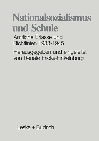 1. Volksschulen.- Dokumente.- 1. Erlaß zur Einführung der Richtlinien für die unteren Jahrgänge der Volksschule, 10. 4. 1937.- 2. Richtlinien für den Unterricht in den vier unteren Jahrgängen der Volksschulen, 1937.- 3. Richtlinien für die Volksschule (Einführungserlaß), 15. 12. 1939.- 4. Erziehung und Unterricht in der Volksschule, 1940.- 2. Mittleres Schulwesen.- Dokumente.- 1. Neuordnung des mittleren Schulwesens, 1. 7 1938.- 2. Vereinheitlichung und Neuordnung des mittleren Schulwesens (Einführungserlaß), 15. 12. 1939.- 3. Bestimmungen über Erziehung und Unterricht in der Mittelschule, 1939.- 4. Schülerauslese für die Hauptschulen, 3. 7. 1941.- 5. Bestimmungen über Erziehung und Unterricht in der Hauptschule (Einführungserlaß), 9. 3. 1942.- 6. Bestimmungen über Erziehung und Unterricht in der Hauptschule, 1942.- 7. Einführung der Hauptschule im alten Reichsgebiete, 13. 6. 1942.- 3. Höheres Schulwesen.- Dokumente.- 1. Schülerauslese an den höheren Schulen, 27.- 3. 1935.- 2. Nationalpolitische Lehrgänge für Schüler der höheren Lehranstalten, 13. 7. 1935.- 3. Körperliche Auslese der Schüler höherer Schulen, 11. 2. 1936.- 4. Vereinheitlichung des höheren Schulwesens, 20. 4. 1936.- 5. Neuordnung des höheren Schulwesens (Einführungserlaß), 29. 1. 1938.- 6. Erziehung und Unterricht in der Höheren Schule, 1938.- 7. Einführung des Erlasses über die Neuordnung des höheren Schulwesens im Lande Österreich, 22. 8. 1938.- 8. Die Organisation des Unterrichts an den Höheren Schulen im Kriege, 20. 3. 1940.- 9. Lehrpläne für die Oberstufe der Oberschulen für Jungen und der Gymnasien, 10. 11. 1943.- 4. Hilfsschulen.- Dokumente.- 1. Überweisung von Kindern in die Hilfsschule, 6. 7. 1935.- 2. Sterilisation von Hilfsschulkindern, 12. 12. 1935.- 3. Allgemeine Anordnung über die Hilfsschulen in Preußen, 27. 4. 1938.- 4. Richtlinien für Erziehung und Unterricht in der Hilfsschule (Einführungserlaß), 18. 2. 1942.- 5. Erziehung und Unterricht in der Hilfsschule, 1942.- 5. Leibeserziehung.- Dokumente.- 1. Richtlinien für die Leibeserziehung in Jungenschulen, 1937.- 2. Richtlinien für die Leibeserziehung der Mädchen in Schulen, 1941.- 3. Einlagerung von Getreide in Turnhallen, 14. 10. 1938.- 4. Richtlinien fit. den Turnunterricht im Falle der Sicherstellung einer Turnhalle für die Zwecke der Getreidelagerung, 6. 2. 1939.- 5. Getreidelagerung in Turnhallen, 4. 5. 1939.- 6. Leibeserziehung in der Schule, 23. 12. 1939.- 6. Mädchenbildung.- Dokumente.- 1. Besuch der Frauenschule, 14. 6. 1934.- 2. Dreijährige Frauenschule, 9. 7. 1934.- 3. Vorläufige Richtlinien für die ein- und dreijährigen Frauenschulen, 23. 5. 1935.- 4. Aufnahme in die wissenschaftliche Oberstufe der höheren Mädchenanstalten, 4. 11. 1935.- 5. Aufnahme in die wissenschaftliche Oberstufe der höheren Mädchenanstalten, 23. 6. 1936.- 6. Hauswirtschaftliche Aufnahmeprüfung, 23. 4. 1937.- 7. Mädchen an Jungenschulen, 27. 8. 1938.- 8. Mädchen an Jungenschulen, 18. 1. 1939.- 9. Wegfall der hauswirtschaftlichen Aufnahmeprüfung, 15. 11. 1939.- 10. Sonderunterricht für Mädchen, die Oberschulen für Jungen besuchen, 12. 1. 1940.- 7. Rassenkunde.- Dokumente.- 1. Vererbungslehre und Rassenkunde in den Schulen, 13. 9. 1933.- 2. Vererbungslehre und Rassenkunde in den Schulen, 13. 3. 1934.- 3. Vererbungslehre und Rassenkunde in den Schulen, 15. 1. 1935.- 4. Vererbungslehre und Rassenkunde im Unterricht, 15. 1. 1935.- 5. Familien- und Sippenkunde im Unterricht (Bremen), 31. 3. 1936.- 8. Schulfeiern und Gedenktage.- Dokumente.- 1. Einführung des Hitlergrußes, 22. 7. 1933.- 2. Muttertag, 12. 5. 1933.- 3. Schulfeier am 30. Januar, 21. 1. 1936.- 4. Geburtstag des Führers, 24. 3. 1937.- 5. Saarpropaganda, 5. 2. 1934.- 6. Saarpropaganda, 14. 4. 1934.- 7. Rückkehr des Saarlandes, 14. 2. 1935.- 8. Störungen des Schulbetriebes durch Sammlungen und außerschulische Veranstaltungen, 17. 5. 1935.- 9. Sammlungen in den Schulen, 13. 2. 1936.- 10. Schule und Vierjahresplan, 15. 7. 1937.- 11. Sammlung der Altmaterialien, 16. 2. 1940.- 12. Erläuterungen zur Kriegslage, 10. 7. 1944.- 9. Schule und HJ.- Dokumente.- 1. Pflege der Beziehungen der Schule zur Hit- lerjugend, 26. 8. 1933.- 2. Übermäßige Beanspruchung der Schuljugend durch Teilnahme an Vereinsfesten und ähnlichen Veranstaltungen, 12. 1. 1934.- 3. Staatsjugendtag, 30. 7. 1934.- 4. Schulstunden der Hitler-Jugend, 23. 8. 1934.- 5. Beurlaubungen von Schülern mittlerer und höherer Lehranstalten zu Führer-Schulungslehrgängen der Hitler-Jugend, 21. 12. 1934.- 6. Staatsjugendtag, 5. 4. 1935.- 7. Gleitender Sechstageplan, 13. 9. 1935.- 8. Nationalpolitischer Unterricht am Staatsjugendtag (Hamburg), 15. 10. 1935.- 9. Aufhebung des Staatsjugendtages, 4. 12. 1936.- 10. Vertrauenslehrer der HJ, 18. 2. 1938.- 11. Schule und Hitler-Jugend, 8. 2. 1941.- 10. Jüdische Schüler.- Dokumente.- 1. Schüler nichtarischer Abstammung an höheren und mittleren Schulen, 8. 5. 1933.- 2. Entbindung jüdischer Schüler vom Schulunterricht an Sonnabenden, 17. 6. 1933.- 3. Schulbesuch jüdischer und adventistischer Kinder an den jüdischen Feiertagen und am Sonnabend, 16. 3. 1934.- 4. Beschränkung des Besuches der höheren Schulen, 4. 4. 1934.- 5. Befreiung nichtarischer Schüler vom nationalpolitischen Unterricht am Sonnabend, 21. 8. 1934.- 6. Besuch von Schullandheimen durch nichtarische Schüler, 31. 7. 1935.- 7. Runderlaß des Reichsministers Rust über die Errichtung gesonderter jüdischer Schulen, 10. 9. 1935.- 8. Jüdischer Religionsunterricht (Bayern), 31. 7. 1936.- 9. Wegfall des hebräischen Sprachunterrichts an den humanistischen Gymnasien (Bayern), 21. 12. 1936.- 10. Auswirkungen des Reichsbürgergesetzes auf das Schulwesen, 2. 7. 1937.- 11. Aufhebung des hebräischen Unterrichts in den höheren Schulen, 15. 12. 1937.- 12. Schulunterricht an Juden, 15. 11. 1938.- 13. Ausführungsanweisung zu Artikel II der 10. Verordnung zum Reichsbürgergesetz vom 4. Juli 1939 (