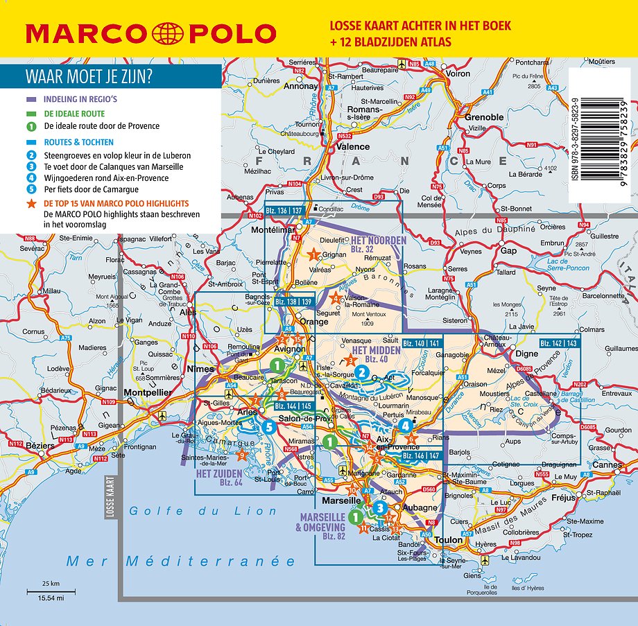 Marco Polo reisgids voor de Provence. Handig pocketformaat, boordevol informatie, met uitneembare kaart achter in het boek en atlas-pagina's. Met Insider Tips om de échte Provence te ontdekken en de TOP 15 van bezienswaardigheden in één oogopslag. Veel up-to-date informatie in overzichtelijke hoofdstukken: sightseeing, eten & drinken, winkelen, uitgaan, verblijf, routes & tochten, voor kinderen, feesten, festivals & evenementen, internet tips, praktische info van a tot z, een taalgidsje, plattegronden en straatnamenregister.