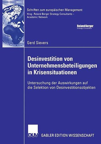 Gerd Sievers entwickelt ein Instrumentarium, das den gezielten Einsatz von Desinvestitionen zur Sicherung der Unternehmensfortführung in Existenz bedrohenden Krisen ermöglicht. Anhand anonymisierter Fallstudien wird detailliert aufgezeigt, wie sich das Modell in der Praxis umsetzen lässt, um die Weichen für erfolgreiche Desinvestitionen zu stellen.
