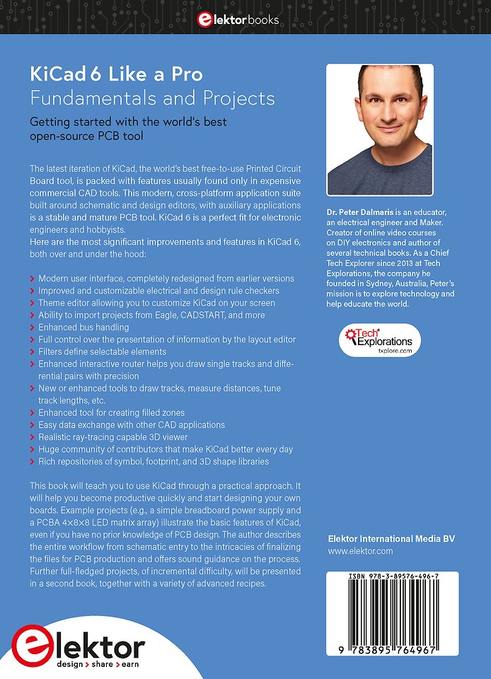 This book will teach you to use KiCad through a practical approach. It will help you become productive quickly and start designing your own boards. Example projects (e.g., a simple breadboard power supply and a PCBA 4×8×8 LED matrix array) illustrate the basic features of KiCad, even if you have no prior knowledge of PCB design. The author describes the entire workflow from schematic entry to the intricacies of finalizing the files for PCB production and offers sound guidance on the process. Further full-fledged projects, of incremental difficulty, will be presented in a second book, together with a variety of advanced recipes.