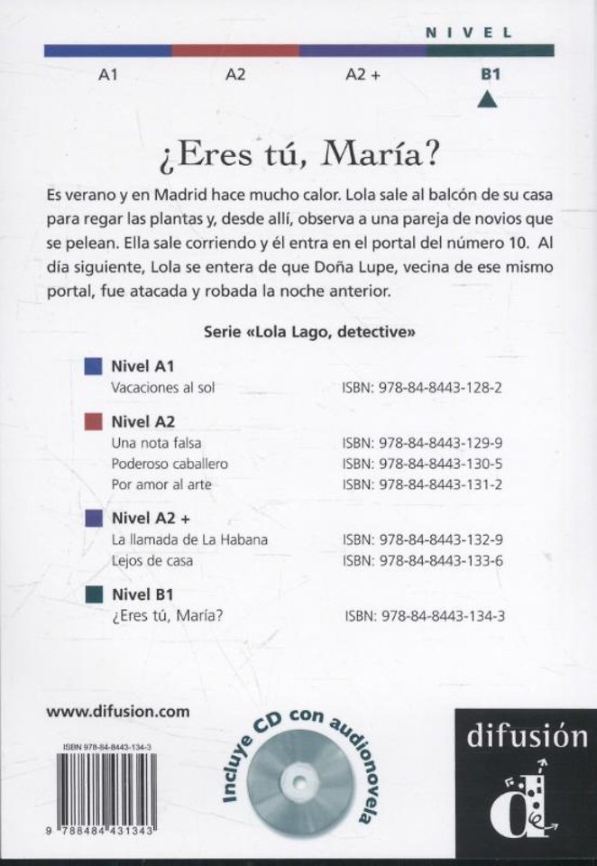 In Eres tú, María? wordt Lola geconfronteerd met de geheimzinnige vermissing van een echtpaar in de portiek aan de overkant. De volgende dag ontdekt ze een verwonding bij de oude buurvrouw die op de derde verdieping woont.(Niveau B1)