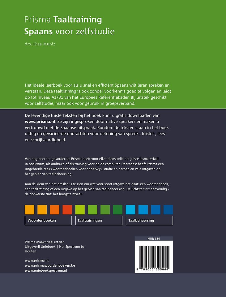 Met deze cursus maak je je snel en efficiënt de grondbeginselen van het Spaans eigen. Leer in je eigen tempo of gebruik het boek bij je studie op een taalinstituut of volksuniversiteit.