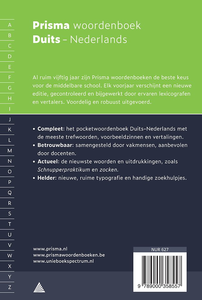 duits nederland woordenboek taalbeheersing vertaling taal naslagwerk onderwijs trefwoorden taalstudie prisma pocketwoordenboek naamvallen werkwoordvervoegingen idioom grammatica voorbeeldzinnen vreemde talen uitspraak middelbare school woordenschat woordsoorten spreekwoorden vaste uitdrukkingen semantiek lexicografie gebruiksaanwijzing