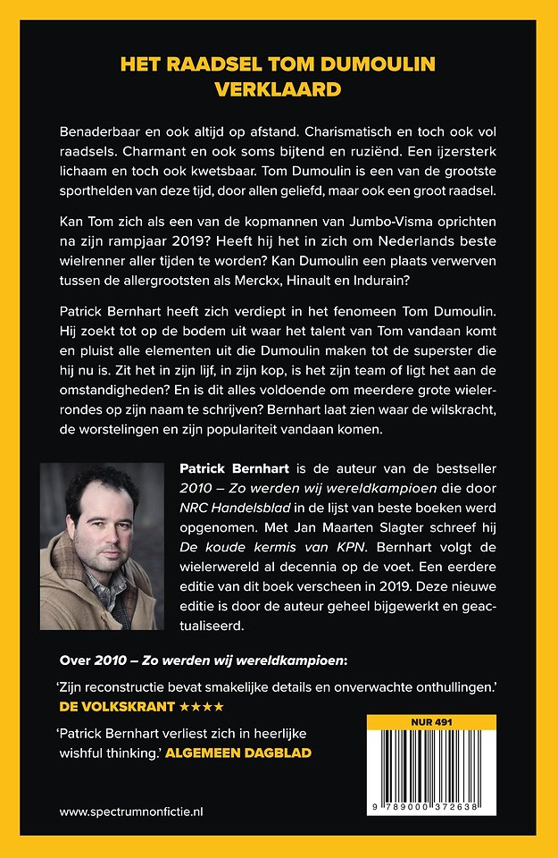 Hij zoekt tot op de bodem uit waar het talent van Tom vandaan komt, hij pluist alle elementen uit die Dumoulin maken tot de superster die hij nu is. Zit het in zijn lijf, in zijn kop, zijn team of ligt het aan de omstandigheden? En is dit alles voldoende om meerdere grote wielerrondes op zijn naam te zetten? Bernhart laat zien waar het talent, de eerzucht en de wilskracht vandaan komen. En uiteraard beantwoordt hij de vraag: gaat Tom uiteindelijk de Tour winnen?