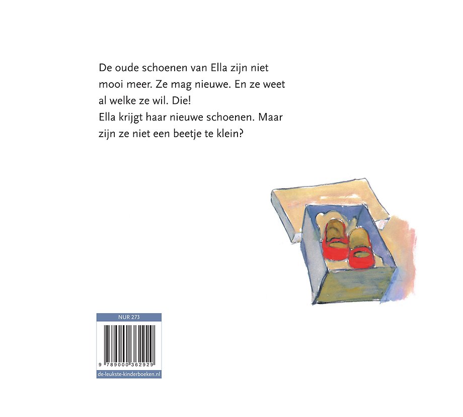 De oude schoenen van Ella zijn niet mooi meer. Ze mag nieuwe. En ze weet al welke ze wil. Die! Ella krijgt haar nieuwe schoenen. Maar zijn ze niet een beetje te klein?