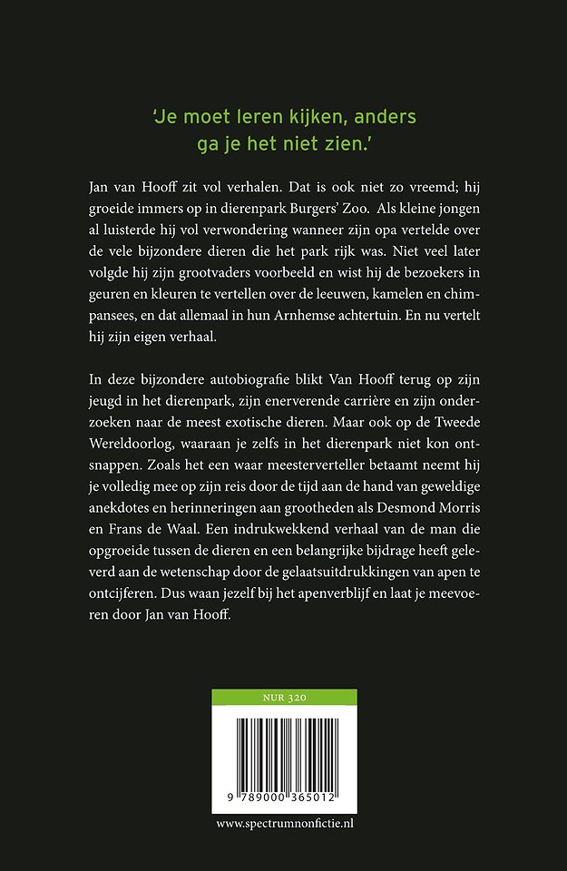 Deze bijzondere autobiografie van onze eigen Nederlandse David Attenborough zit vol geweldige anekdotes over onder andere zijn jeugd tijdens de Tweede Wereldoorlog in de dierentuin, zijn bijzondere carrière, zijn relatie met Niko Tinbergen, Desmond Morris en Frans de Waal en over zijn onderzoek naar de meest exotische dieren. Een indrukwekkend verhaal van de man die opgroeide tussen de dieren en gewerkt heeft met alle grootheden op het gebied van de biologie.