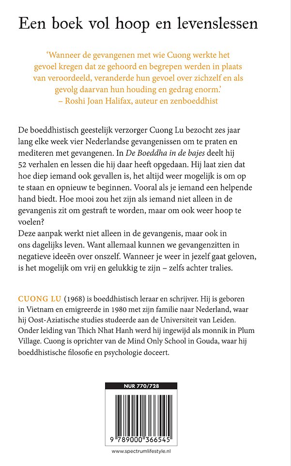 De boeddhistische monnik Cuong Lu, opgeleid door Thich Nhat Hanh, gaat elke week naar een Nederlandse gevangenis om te praten en mediteren met gevangenen. In dit boek deelt hij 52 verhalen en lessen die hij in zijn jaren als geestelijk verzorger in de gevangenis heeft opgedaan Cuong ontdekte dat wanneer de gevangenen het gevoel kregen dat ze gehoord en begrepen werden in plaats van veroordeeld, hun houding en gedrag enorm veranderden.
