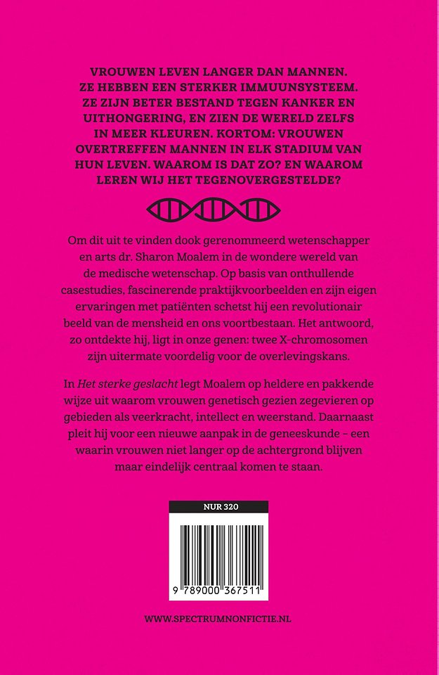 In Het sterke geslacht legt Moalem op heldere en pakkende wijze uit waarom vrouwen genetisch gezien zegevieren op gebieden als veerkracht, intellect en weerstand. Daarnaast pleit hij voor een nieuwe aanpak in de geneeskunde – een waarin vrouwen niet langer op de achtergrond blijven maar eindelijk centraal komen te staan.