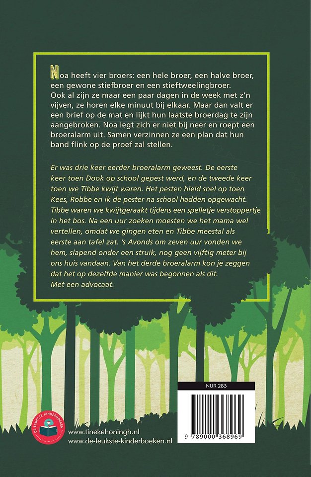 Voor Noa, Robbe, Kees, Dook en kleuter Tibbe is het elke dag broerdag. Ze zijn onafscheidelijk en het maakt ze helemaal niets uit dat ze niet allemaal dezelfde ouders hebben. Samen bouwen ze hutten en ravotten ze in het bos – en als een van hen in de problemen zit, kan hij rekenen op de rest. Ze horen bij elkaar, wat er ook gebeurt.