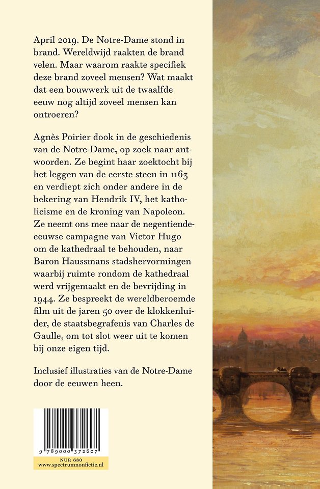 Agnès Poirier dook in de geschiedenis van de Notre-Dame, op zoek naar antwoorden. Ze begint haar zoektocht bij het leggen van de eerste steen in 1163 en verdiept zich in de bekering van Hendrik IV tot het katholicisme en de kroning van Napoleon. Ze neemt de lezer mee naar de negentiendeeeuwse campagne van Victor Hugo om de kathedraal te behouden, naar Baron Haussmanns stadshervormingen waarbij ruimte rondom de kathedraal werd vrijgemaakt en de bevrijding in 1944. Daarnaast gaat ze dieper in op de wereldberoemde film uit de jaren '50 over de klokkenluider die de kathedraal ook bij een jong publiek onder de aandacht bracht, de staatsbegrafenis van Charles de Gaulle, om tot slot weer uit te komen bij onze eigen tijd.