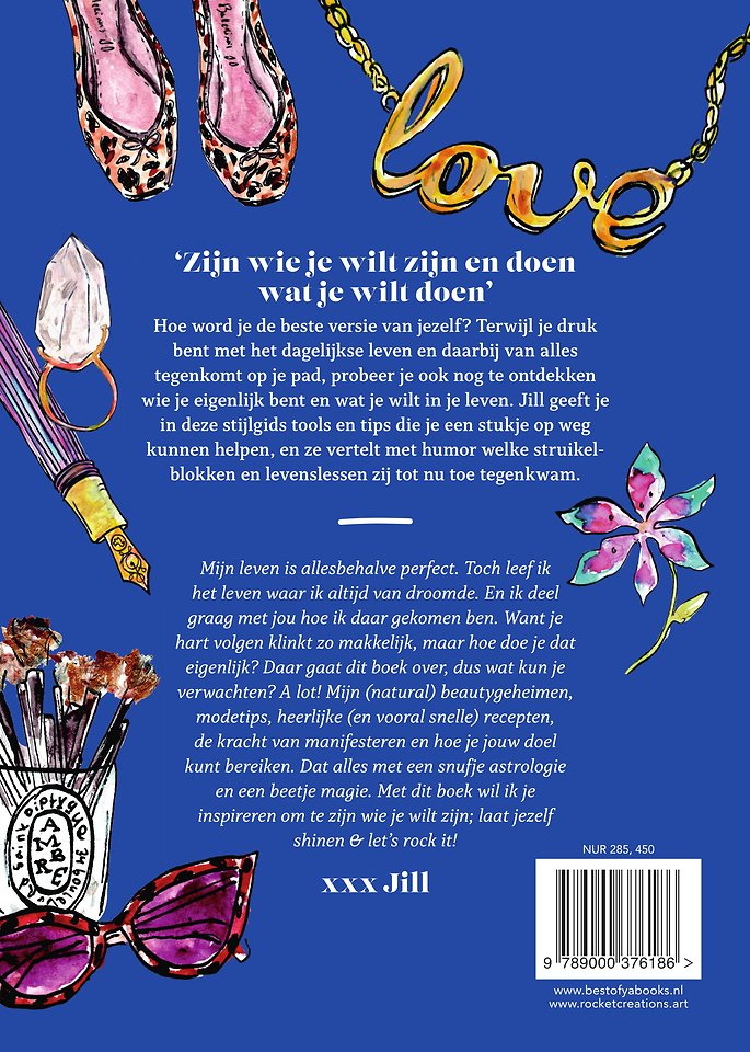 'Soms zit een boek zo diep in je hart, dat het even duurt voordat het eruit komt. Het schrijven voelde dan ook als een bevrijding. In dit boek laat ik een totaal andere kant van mezelf zien dan mensen gewend zijn van tv. Eentje zonder glitterlaagje, the real me. Ik deel mijn tips en tools die ik in de loop der jaren verzameld heb om je eigen droomversie te kunnen worden. Dit is allesbehalve een influencersboek, maar ik hoop wel dat het mensen gaat 'influencen' om te geloven in hun eigen kracht en potentieel. Wees wie je wilt zijn. Let's rock it! X Jill