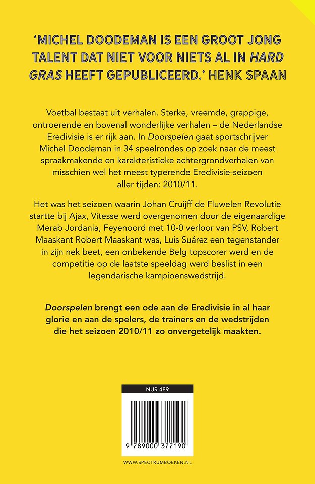 In Doorspelen brengt Doodeman een ode aan de Eredivisie in al haar glorie – en aan de spelers, de trainers en de wedstrijden die het seizoen 2010/11 zo onvergetelijk maakten.