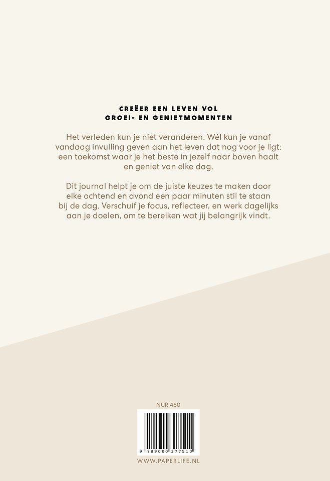 Beeld je eens in hoe jouw toekomst eruitziet als je elke dag keuzes maakt die in lijn staan met de persoon die je wilt zijn. Als je dagelijks tijd vrijmaakt voor jezelf, kiest voor een fijne balans tussen in- en ontspanning, loslaat waar je geen invloed op hebt, jezelf waardeert voor wie je bent en de focus legt op je eigen groei. Dit journal helpt daarbij.