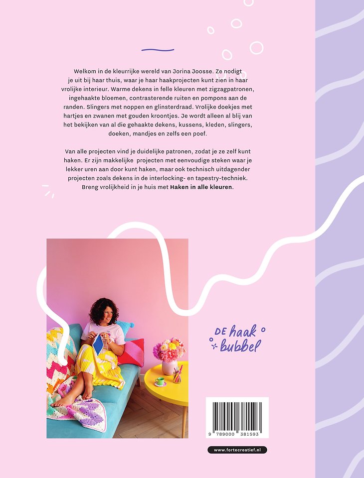 Jorina heeft een hele serie haakprojecten ontworpen in vrolijke, zoete kleuren. Haar werk is felgekleurd en toch zacht. Met dit boek nodigt Jorina de lezer uit bij haar thuis, waar je haar haakprojecten kunt zien in haar kleurrijke interieur.