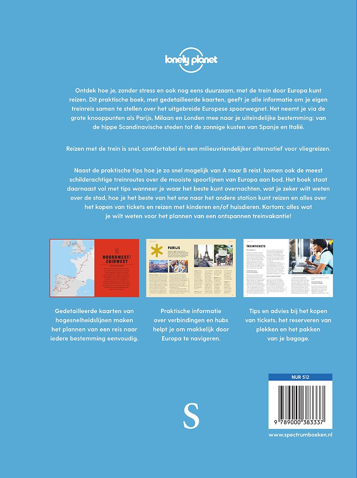 Naast de praktische tips hoe je zo snel mogelijk van A naar B reist, komen ook de meest schilderachtige treinroutes over de mooiste spoorlijnen van Europa aan bod. Het boek staat daarnaast vol met tips wanneer je waar het beste kunt overnachten, wat je zeker wilt weten over de stad, hoe je het beste van het ene naar het andere station kunt reizen en alles over het kopen van tickets en reizen met kinderen en/of huisdieren. Kortom: alles wat je wilt weten voor het plannen van een ontspannen treinvakantie!