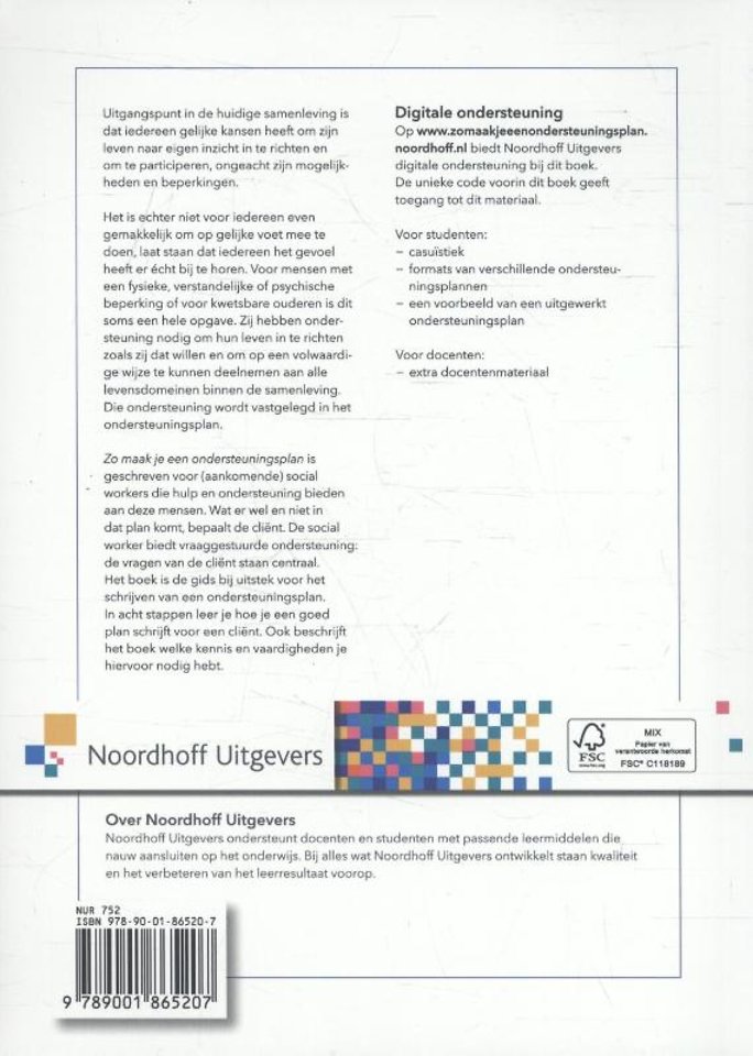 Dit praktische boek leert (aankomend) social workers stapsgewijs hoe zij een ondersteuningsplan maken en beschrijft welke kennis en vaardigheden zij hiervoor nodig hebben.