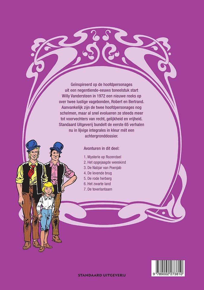 Geïnspireerd op de hoofdpersonages uit een negentiende-eeuws toneelstuk start Willy Vandersteen in 1972 een nieuwe reeks op over twee lustige vagebonden, Robert en Bertrand. Aanvankelijk zijn de twee hoofdpersonages nog schelmen, maar al snel evolueren ze steeds meer tot voorvechters van recht, gelijkheid en vrijheid. Standaard Uitgeverij bundelt de eerste 65 verhalen nu in lijvige integrales in kleur mét een achtergronddossier. Integraal 1 bevat volgende verhalen: Mysterie op Rozendael, Het opgejaagde weeskind, De nabjar van Poenjab, De levende brug, De rode herberg, Het zwarte land, De toverlantaarn.