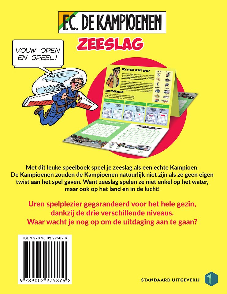 Met dit leuke speelboek speel je zeeslag als een echte Kampioen. De Kampioenen zouden de Kampioenen natuurlijk niet zijn als ze geen eigen twist aan het spel gaven. Want zeeslag spelen ze niet enkel op het water, maar ook op het land en in de lucht!