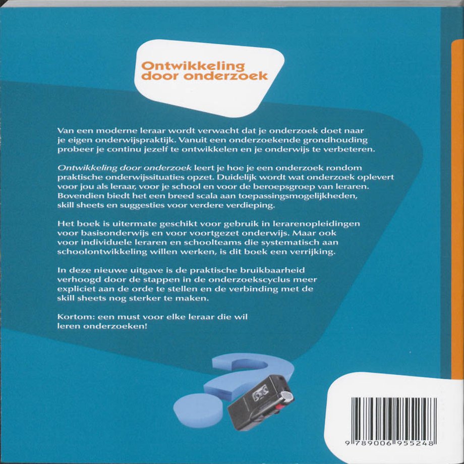 Welke winst is er uit gericht onderzoek te halen voor de leerkracht, school en beroepsgroep? 'Ontwikkeling door onderzoek' geeft antwoord aan de hand van vele voorbeelden, toepassingsmogelijkheden en skillsheets.
