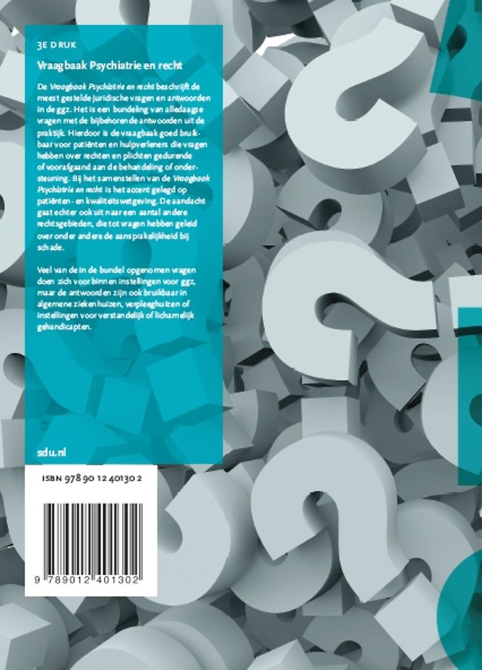 De Vraagbaak Psychiatrie en recht beschrijft de meest gestelde juridische vragen en antwoorden in de ggz. Het is een bundeling van alledaagse vragen met de bijbehorende antwoorden uit de praktijk. Hierdoor is de vraagbaak goed bruikbaar voor patiënten en hulpverleners die vragen hebben over rechten en plichten gedurende of voorafgaand aan de behandeling of ondersteuning.