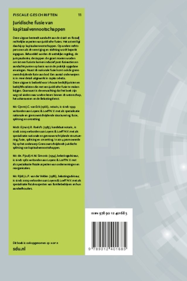 Deze uitgave besteedt aandacht aan de civiel- en fiscaalrechtelijke aspecten van juridische fusies. Het accent ligt daarbij op kapitaalvennootschappen. Op andere rechtspersonen als de vereniging en stichting wordt beperkt ingegaan.