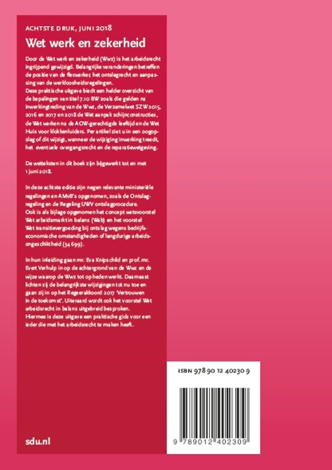 In hun inleiding gaan mr. Eva Knipschild en prof. mr. Evert Verhulp in op de achtergrond van de Wwz en de wijze waarop de Wwz tot op heden werkt. Daarnaast lichten zij de belangrijkste wijzigingen tot nu toe en gaan zij in op het Regeerakkoord 2017 ‘Vertrouwen in de toekomst’. Uiteraard wordt ook het voorstel Wet arbeidsrecht in balans uitgebreid besproken. Hiermee is deze uitgave een praktische gids voor een ieder die met het arbeidsrecht te maken heeft.