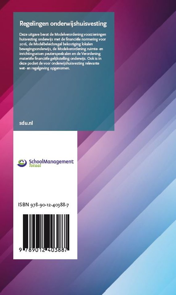 Ook is in deze pocket de voor onderwijshuisvesting relevante wet- en regelgeving opgenomen.