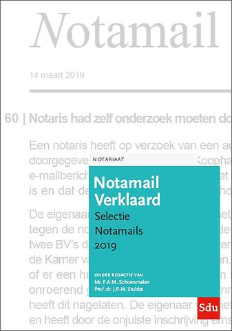 De bundel Notamail Verklaard. Selectie Notamail 2019, onder redactie van mr. F.A.M. Schoenmaker en prof. dr. J.P.M. Stubbé, omvat alle Notamails uit 2019 thematisch gerangschikt en voorzien van inleidingen door notariële hoogleraren. Alle thematische inleidingen zijn voorzien van een handige index met alle op het onderwerp betreffende Notamails uit 2019.