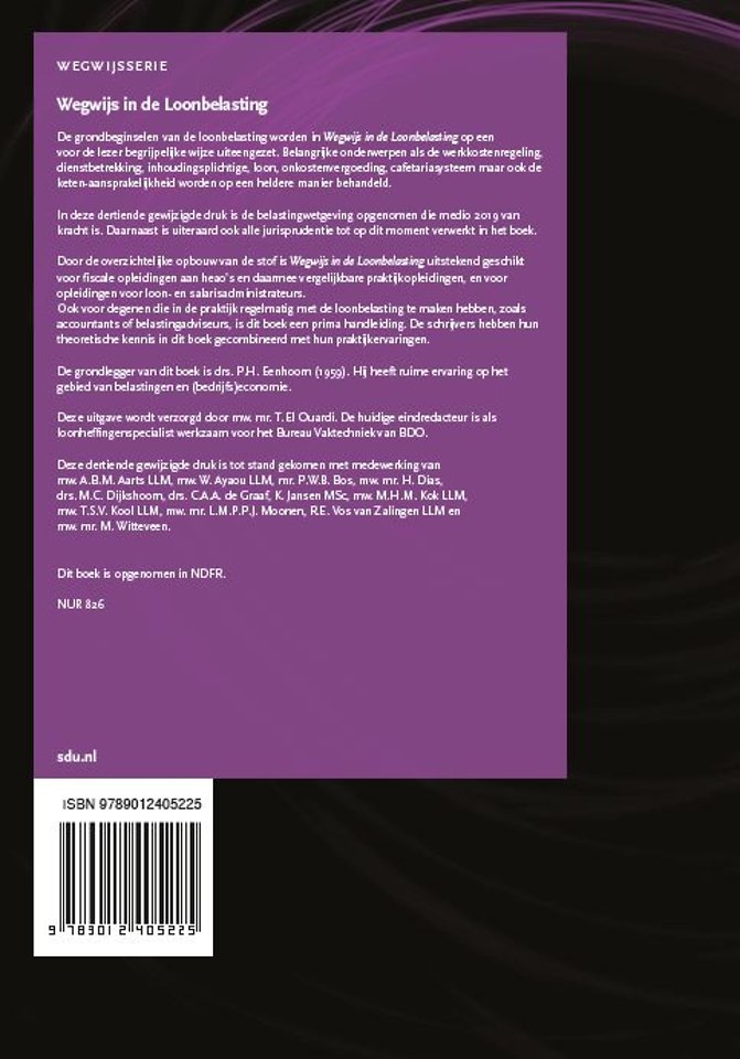 In de dertiende gewijzigde druk van Wegwijs in de Loonbelasting is de belastingwetgeving opgenomen die medio 2019 van kracht is. Daarnaast is uiteraard ook alle jurisprudentie tot op dit moment verwerkt in het boek.