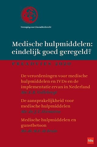 Drie preadviseurs openen de discussie: in het eerste deel analyseert mr. E.J. Vollebregt de twee nieuwe Europese verordeningen: de Verordening medische hulpmiddelen en de Verordening in-vitrodiagnostiek. Mr. dr. J.T. Hiemstra gaat in het tweede deel in op de aansprakelijkheid voor schade ontstaan door medische hulpmiddelen. In het derde deel van het preadvies neemt mr. dr. M.E. De Bruin de gunstbetoonregeling voor medische hulpmiddelen onder de loep en geeft een nadere beschrijving en analyse van de wijze waarop de Nederlandse wetgever en de zelfregulering van de stichting Gedragscode Medische Hulpmiddelen invulling hebben gegeven aan de voorschriften over gunstbetoon in de hulpmiddelensector.