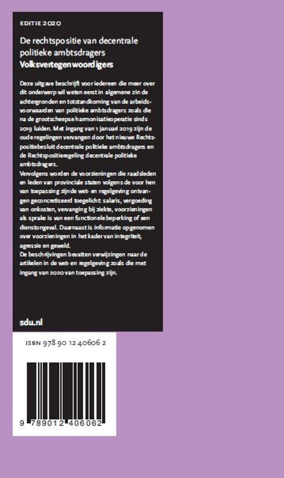 De rechtspositie van decentrale politieke ambtsdragers, Volksvertegenwoordigers. Editie 2020
