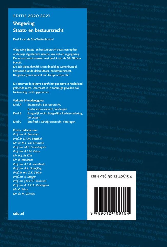 Wetgeving Staats- en Bestuursrecht - Editie 2020-2021