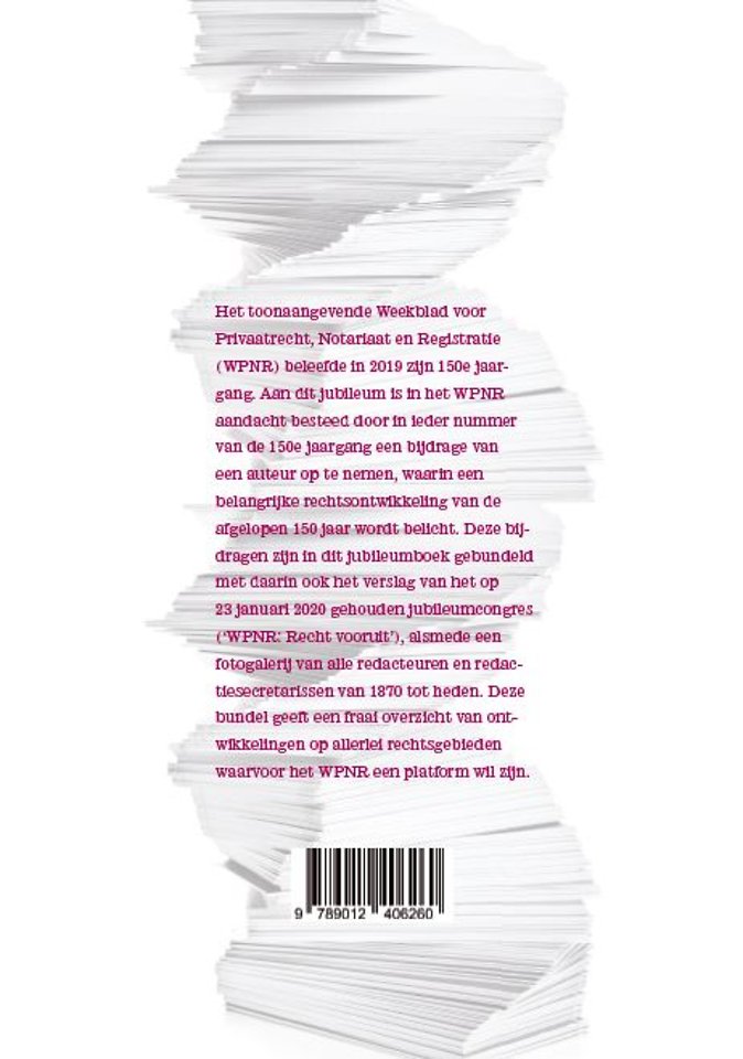 Het toonaangevende Weekblad voor Privaatrecht, Notariaat en Registratie (WPNR) beleefde in 2019 zijn 150e jaargang. Aan dit jubileum is in het WPNR aandacht besteed door in ieder nummer van de 150e jaargang een bijdrage van een auteur op te nemen, waarin een belangrijke rechtsontwikkeling van de afgelopen 150 jaar wordt belicht.