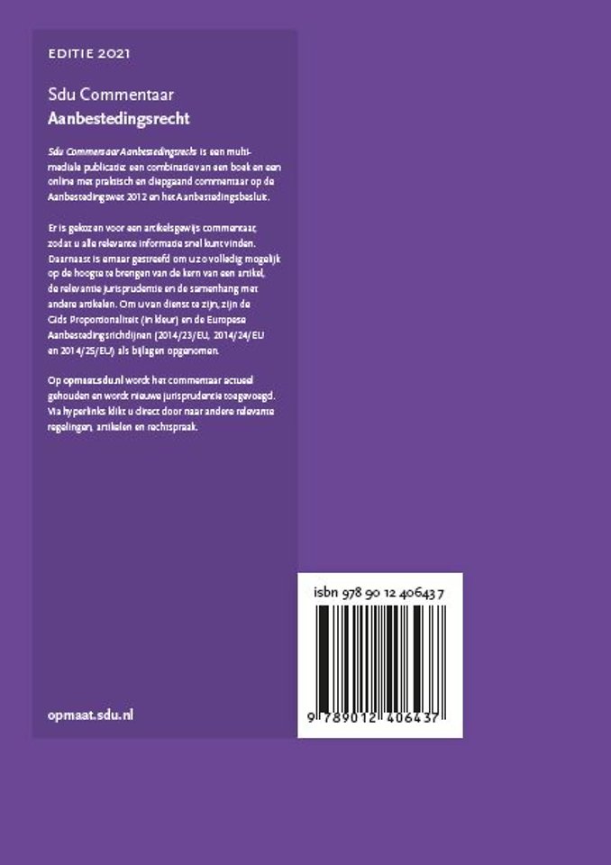 Sdu Commentaar Aanbestedingsrecht bevat praktisch en diepgaand commentaar op de Aanbestedingswet 2012 en het Aanbestedingsbesluit.