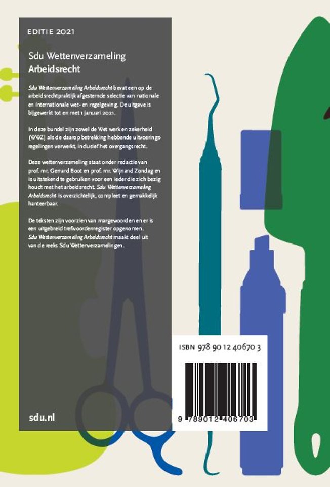 Sdu Wettenverzameling Arbeidsrecht bevat een op de arbeidsrechtpraktijk afgestemde selectie van nationale en internationale wet- en regelgeving. De uitgave is bijgewerkt tot en met 1 januari 2021. In deze bundel zijn zowel de Wet werk en zekerheid (WWZ) als de daarop betrekking hebbende uitvoeringsregelingen verwerkt, inclusief het overgangsrecht.