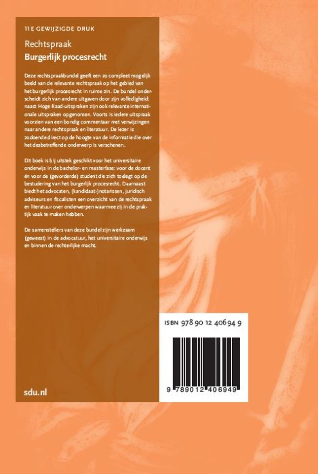De redactie heeft getracht in Rechtspraak Burgerlijk procesrecht de meest relevante jurisprudentie van de Hoge Raad op de verschillende deelgebieden van ons burgerlijk procesrecht bijeen te brengen. Uitgangspunt is geweest om in iets meer dan honderd uitspraken de fundamenten van het burgerlijk procesrecht te schetsen. Bij de selectie is in het algemeen de voorkeur gegeven aan jongere jurisprudentie en is getracht een evenwichtige spreiding over de diverse thema’s te bereiken. Behalve uitspraken van de Hoge Raad zijn ook de voor dit rechtsgebied meest relevante uitspraken van supranationale rechtscolleges opgenomen. Ook voor het burgerlijk procesrecht geldt immers dat colleges in Brussel, Luxemburg en Straatsburg soms de toon zetten. Wie geen kennisneemt van dergelijke uitspraken, kan van een koude kermis thuiskomen.