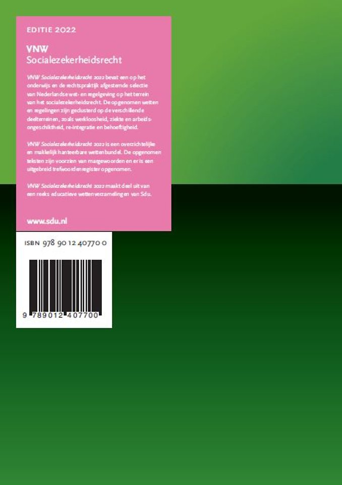 VNW Socialezekerheidsrecht 2022 maakt deel uit van de reeks educatieve wettenverzamelingen van Sdu.