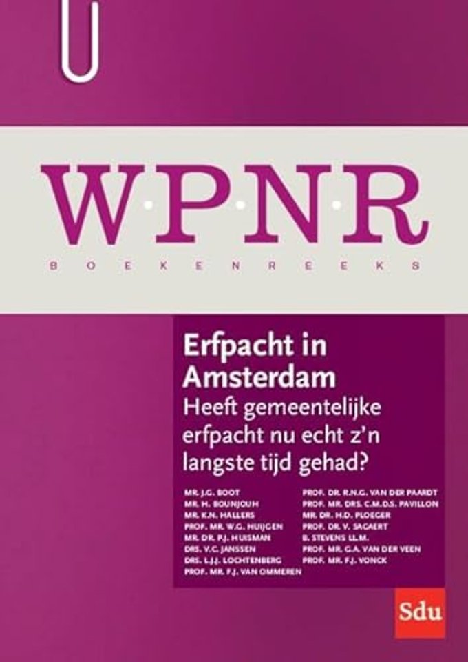 Erfpacht in Amsterdam is als deel 14 verschenen in de WPNR-boekenreeks. De bijdragen in deze bundel verschenen eerder in het WPNR-themanummer 'Erfpacht in Amsterdam' (WPNR 2022/7364 en 7365).