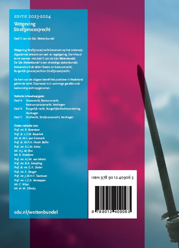 Wetgeving Straf (proces)recht 2023-2024 staat onder redactie van: