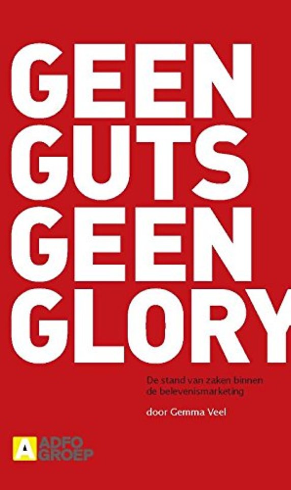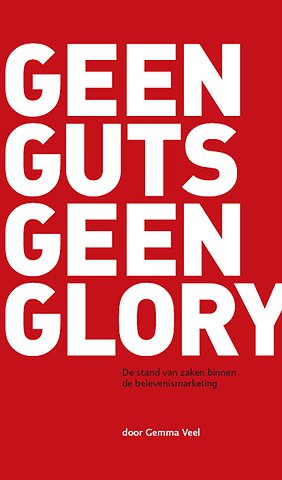 De reclamespot op televisie is nog altijd het populairste middel om mensen te verleiden met uw product. Maar waar je vroeger genoeg had aan drie spotjes, heeft u er tegenwoordig zo'n 150 nodig om gezien te worden door de consument. Consultant Gemma Veel nodigt vakmensen uit om hun doelgroep op een ándere manier te bereiken. Ze noemt die methode belevenismarketing en overtuigt u ervan dat hiervoor geen forse budgetten nodig zijn, zoals voor de traditionele media. Ze geeft veel voorbeelden hoe u met een klein budget gigantisch veel publiciteit kunt genereren. 'Geen guts geen glory' is prikkelend, uitdagend en inspirerend.